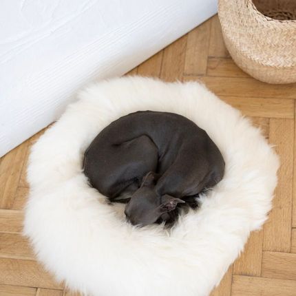 MELLOW CONCEPT STORE Lit Rond pour Animal en Peau de Mouton Naturelle - Blanc