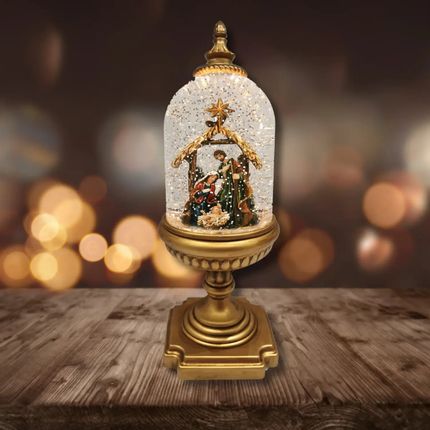 Cloche Crèche LED sur Socle avec Paillettes, Lumière Chaleureuse, Minuterie et DC