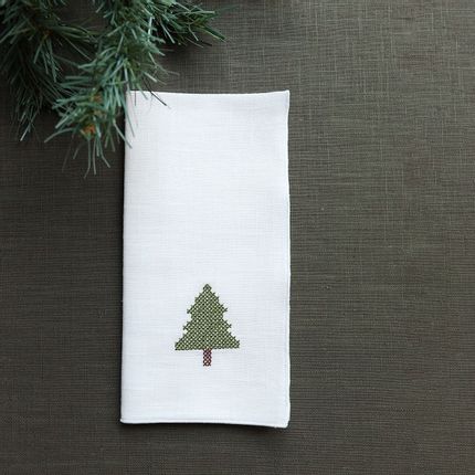 Serviette en lin PUNTO CROCE | Sapin de Noël