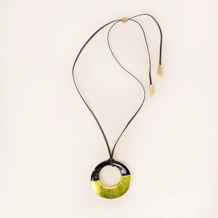 Pendentif petit anneau épais et irrégulier corne blonde et laque brique
