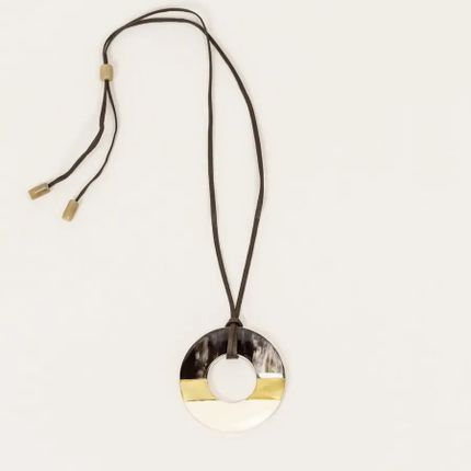 Pendentif anneau corne noire Africaine, laque ivoire et laiton
