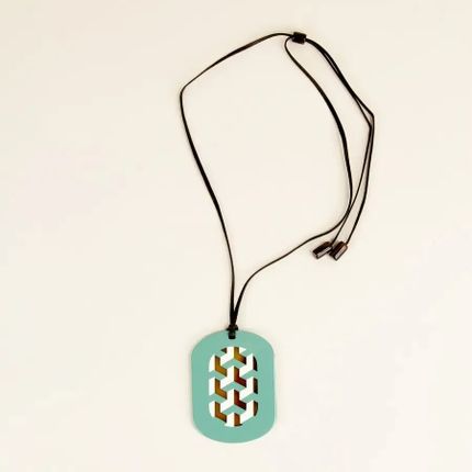 L INDOCHINEUR X RIVÊT Pendentif oval aux motifs Tresse avec laque indigo et orange