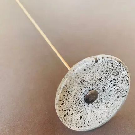 CARNEOL GLASS Petite fleur ronde en verre pour l'extérieur de couleur grise et noire avec tige en acier inoxydable de 43 cm