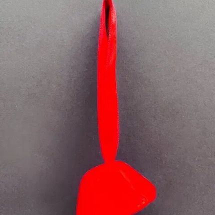 Petite cloche en verre rouge sur un élégant porte-ruban