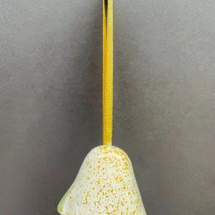 Grande cloche en verre blanc et or sur un élégant cintre en ruban