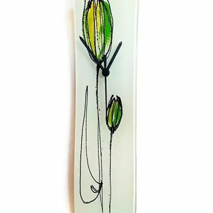 Horloge murale tulipe avec tulipes jaune-vert 10x41 cm
