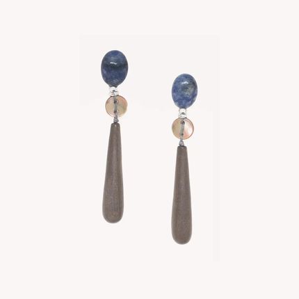 Boucles d'oreilles poussoir pendent goutte ébène gris - Skala