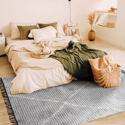 TAPIS TOUNDRA - Tapis tout doux lignes beige et gris clair 160x230