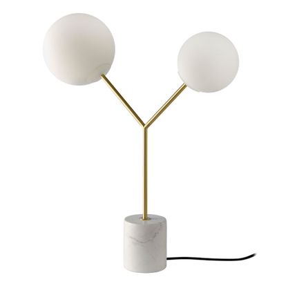 Lampe de table en marbre blanc, acier doré et verre blanc