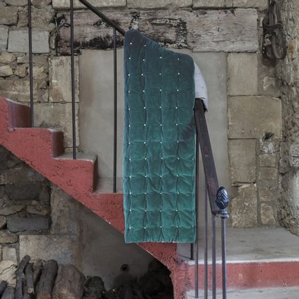 Jeté uni Elise finition capiton Vert de gris 240 x 260