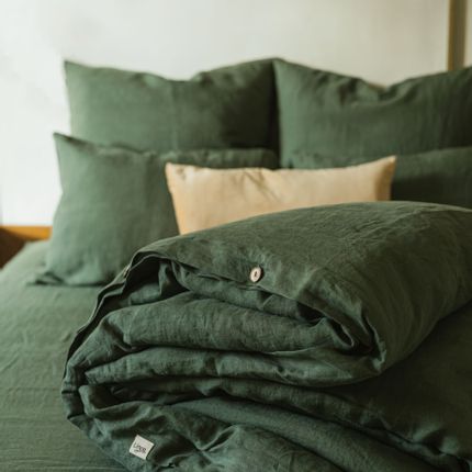 Housse de couette en lin vert forêt