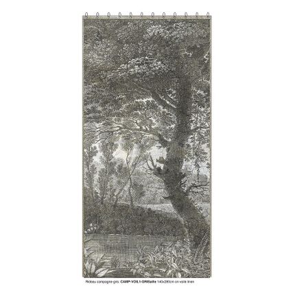 CAMPAGNE Voilage N°1 - Panneau gauche voile de lin imprimé Ananbô 140x280 GRIS