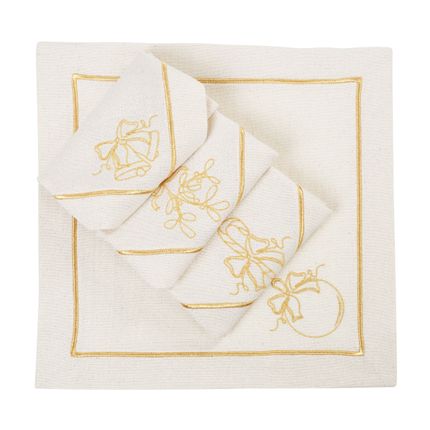 Brodé Serviette de tables Jingle Bells & Christmas Bauble Goldenline - 4 pièces