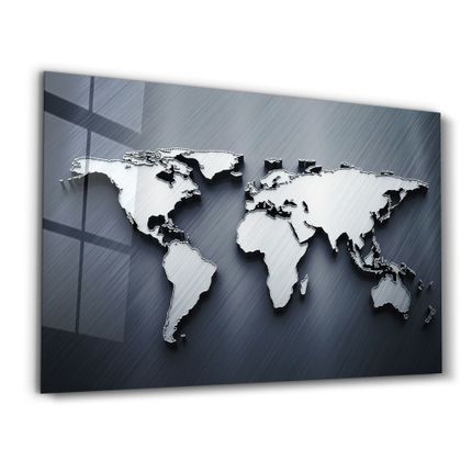 ARTDESIGNA Metallic Blue World Map | Glass Wall Art