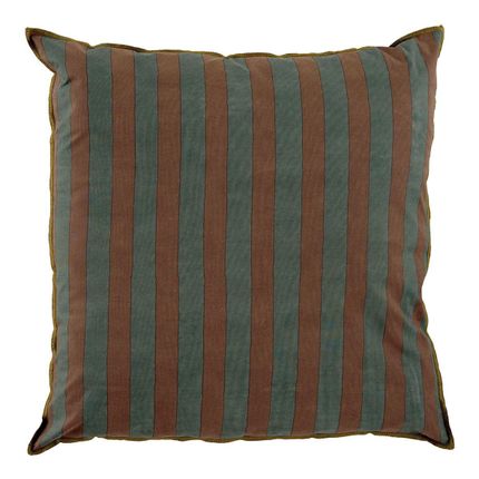 BLANC D'IVOIRE Housse de coussin BAYADERE en coton - Bleu pétrole et terracotta - 50 x 50 cm