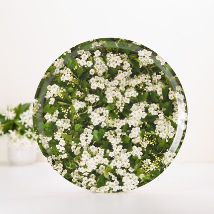 Plateau de service rond en bois - Fleurs de printemps 38 cm