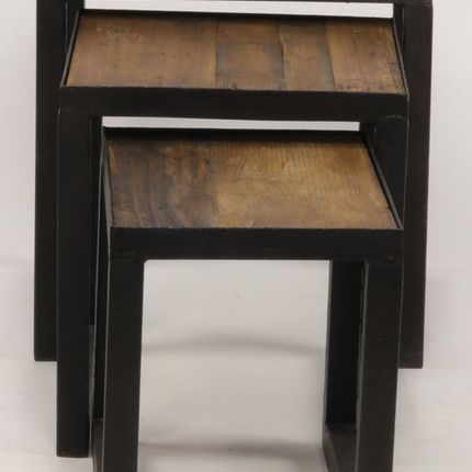 Set de tables gigognes en métal et bois recyclé, 40 cm, style industriel