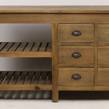 Îlot de rangement Melchior en bois recyclé, 150 cm, 6 tiroirs et 2 étagères