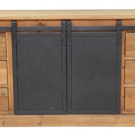 Cabinet industriel bois et métal, 6 tiroirs, design robuste