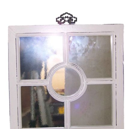 Miroir rond en bois recyclé, finition blanc vieilli, 40 cm