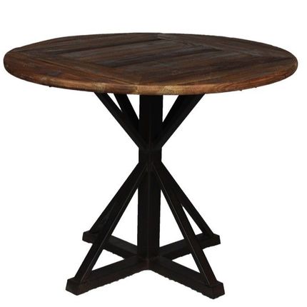 Guéridon industriel en métal et bois recyclé, 100 cm