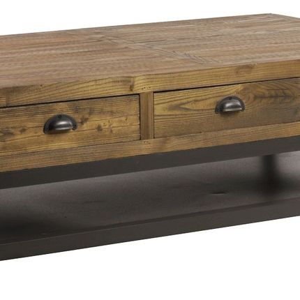 Table basse industrielle, bois recyclé et métal, 140 cm
