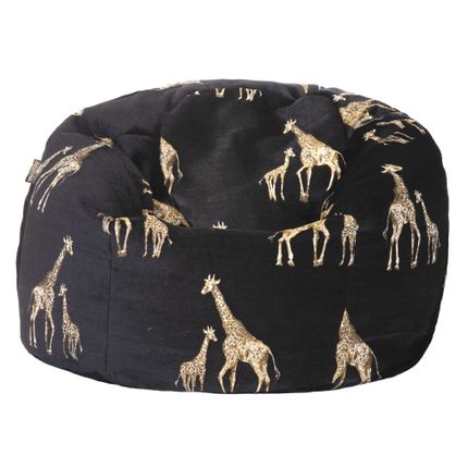 Pouf en velours noir avec girafes brodées