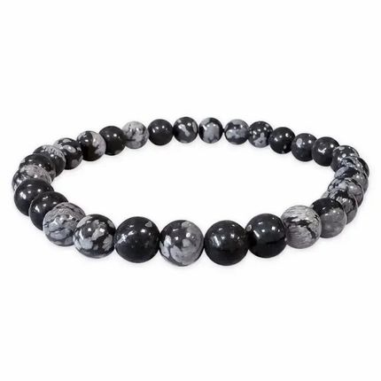 Bracelet Obsidienne Flocon de Neige perles 6mm