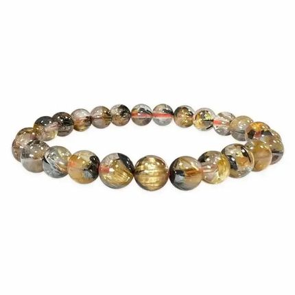 Bracelet Cristal de Roche Rutile Hematite AAA perles 6.5-7.5mm
