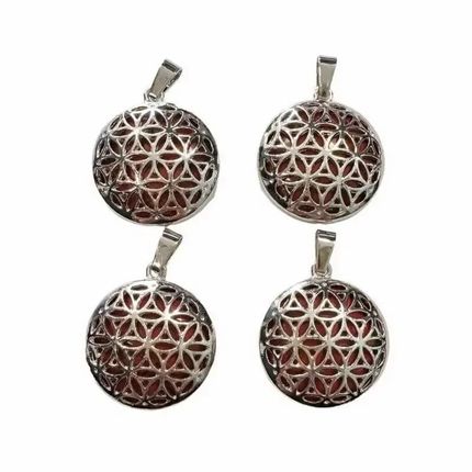 ARABESK Pendentif Métal Fleur de Vie Jaspe Rouge 25mm x4