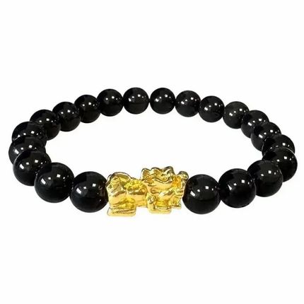 Bracelet Obsidienne Noire & Pixiu A Perles 8mm