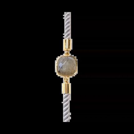 Bracelet Corde Laiton Labradorite Carré Facetté 11mm