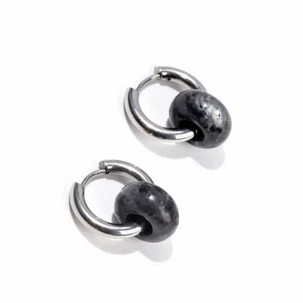 Boucles d'Oreilles Hope Argentées en Acier Inoxydable Larvikite A 18mm