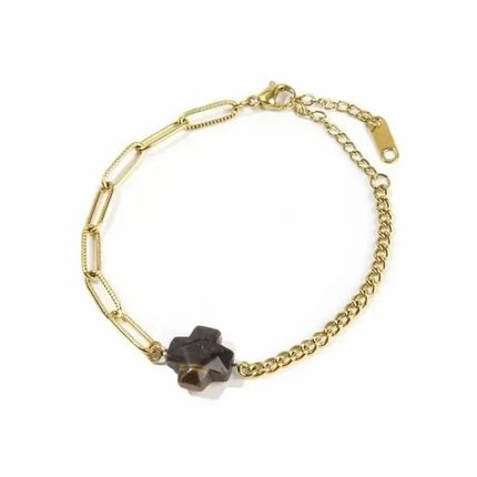 Bracelet Croix Œil de Tigre A en Acier Inoxydable Doré 16cm