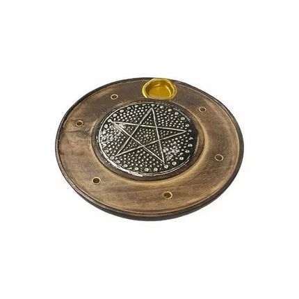 ARABESK Porte Encens en Bois Rond Pentacle 10cm x10