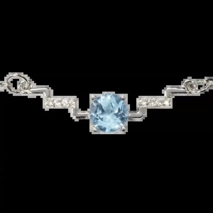 Collier Argent 925 Topaze Bleue et Strass Facetée AA 5mm