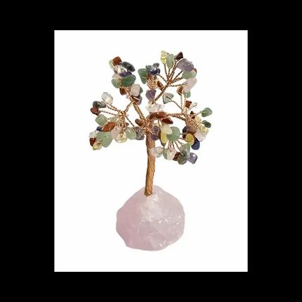 Arbre de Vie 7 Chakras sur Druse Quartz Rose 12-13cm