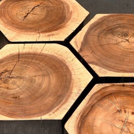 Ensemble de 5 stools hexagonaux en suar bicolore formant mobilier d'appoint modulaire (table basse / assise)