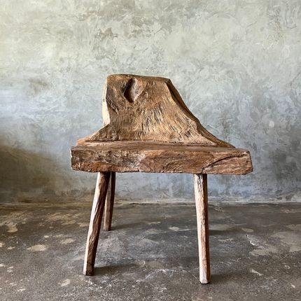 Fauteuil organique massif quadripode en teck brut blond H82 L80 P50