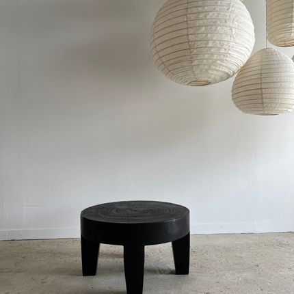 Coffee table, table basse quadripode en bois massif monoxyle noir H:35cm D:63cm