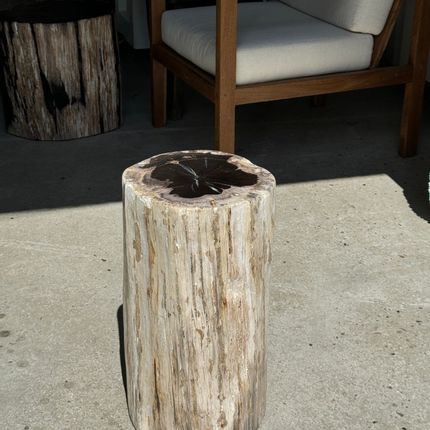 Grande table d'appoint en bois pétrifié écorce blanche cœur noir H:47 D:23-5