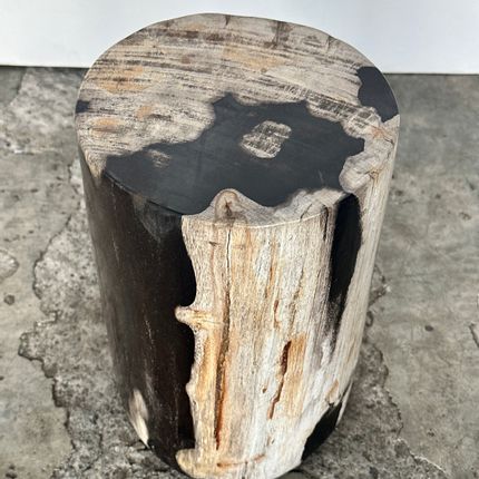 Petite table d'appoint en bois pétrifié noire et blanche H28cm D:18