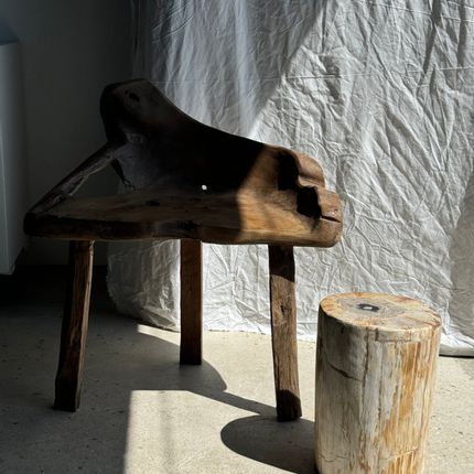 Table d'appoint en bois pétrifié blanc, jaune cœur gris et noir H35 D23