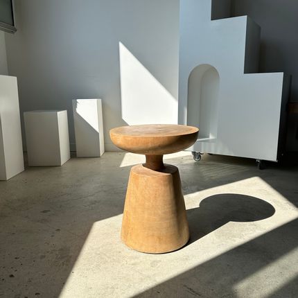 Table d'appoint, bout de canapé ou tabouret en manguier naturel monoxyle à plateau demi sphère H:51cm