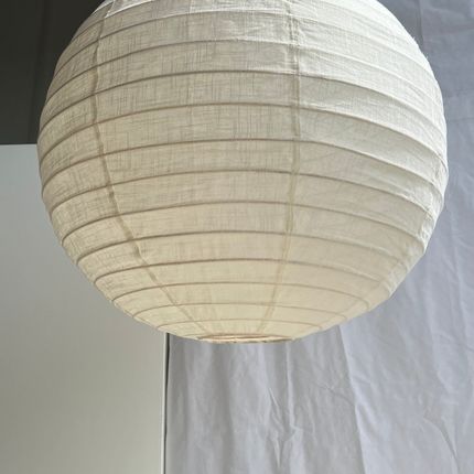Très grande suspension en rotin et lin naturel japonisante ronde D:80