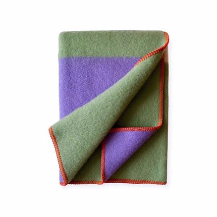 Plaid couverture en laine, Carré Tricolore Lilas Vert