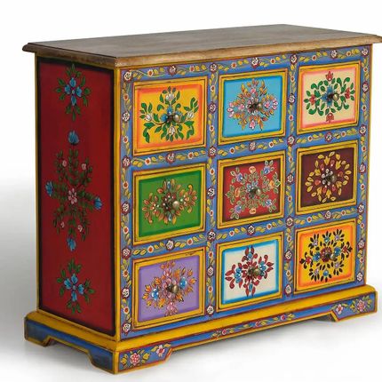 GINER Y COLOMER Commode en bois de manguier avec détails multicolores peints à la main