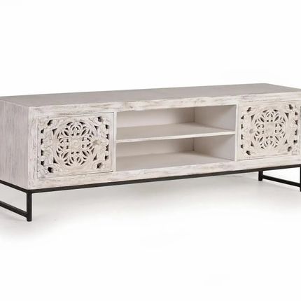 Meuble tv en bois de manguier sculptée et métal