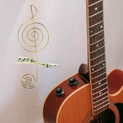 Décoration Murale en Fil de Laiton Doré " Clé de sol " - à punaiser