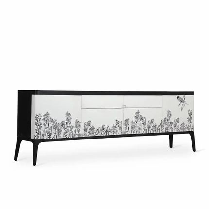 Meuble TV Finura en bois massif avec façades peintes à la main
